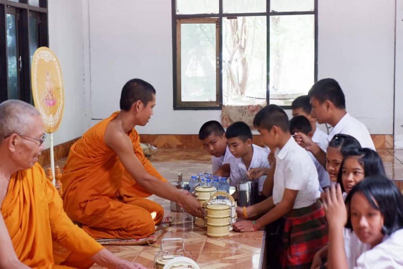 28 สิงหาคม 2563 กิจกรรม " ปิ่นโตสวย รวยบุญ หนุนความดี " ศุกร์นี้เป็นเวรของพี่ๆ ม.1/1 แต่งชุดพื้นบ้านสวยงามพร้อมใจกันนำปิ่นโตไปถวายเพลพระ ณ วัดจันทราปราสาท
