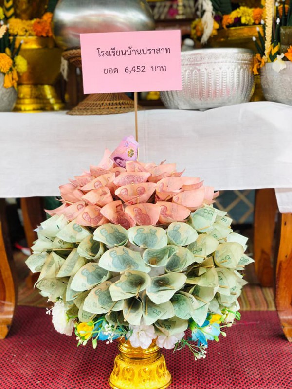 21-22 ตุลาคม 2563 ผอ.สุพิชชา ไพศาลสุวรรณ คณะครู บุคลากรทางการศึกษา และนักเรียนของโรงเรียนบ้านปราสาท ร่วมทำบุญบริจาคปัจจัยสมทบบุญกฐินกับชาวบ้านตำบลปราสาท ถวาย ณ วัดจันทราปราสาท