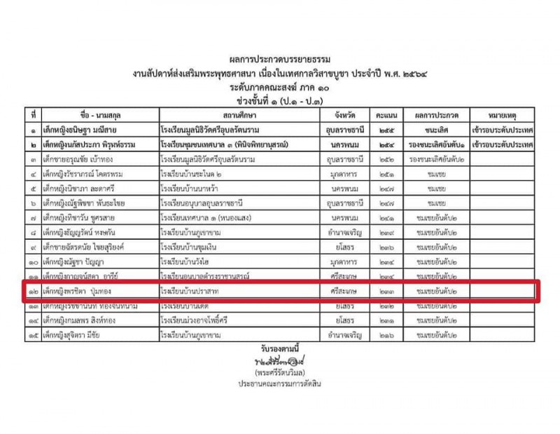 ขอแสดงความชื่นชมยินดีกับนักเรียนคนเก่ง ได้แก่ เด็กหญิงพรชิตา ปุ่มทอง ได้รับรางวัลชมเชยอันดับที่ 2 การประกวดบรรยายธรรม ในงานสัปดาห์ส่งเสริมพระพุทธศาสนาเนื่องในเทศกาลวิสาขบูชา ประจำปี 2564 ระดับภาคสงฆ์ ผู้สนับสนุน ผอ.สุพิชชา ไพศาลสุวรรณ ครูผู้ฝึกสอน คุ
