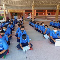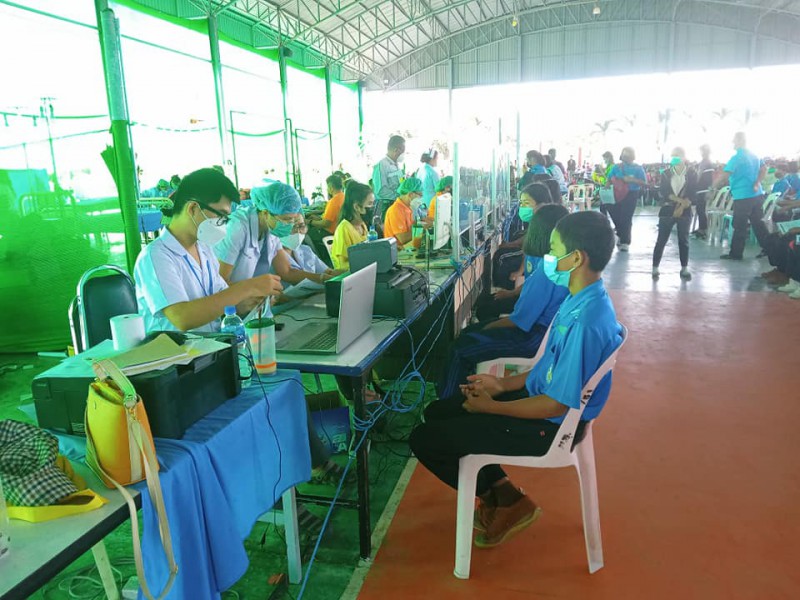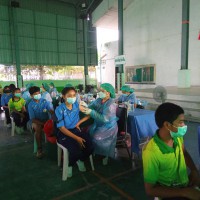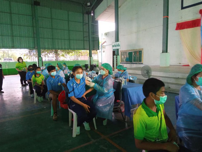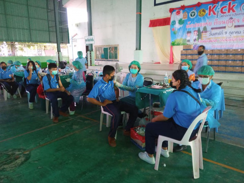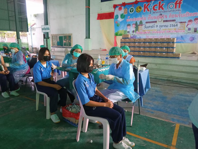 20 ตุลาคม 2564 บรรยากาศการฉีดวัคซีนสำหรับนักเรียน ม.1-3 (ที่แจ้งความประสงค์รับวัคซีน Pfizer) ของโรงเรียนบ้านปราสาท สพป.ศก.3 จำนวน 120 คน ณ โดม โรงเรียนขุขันธ์