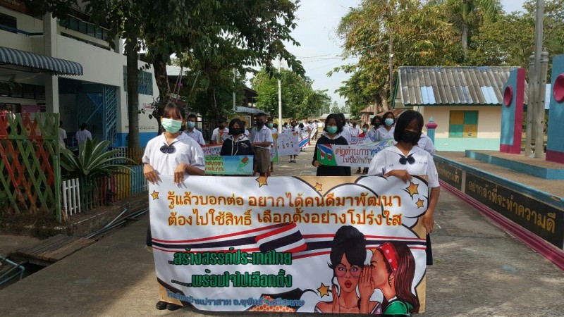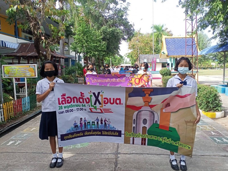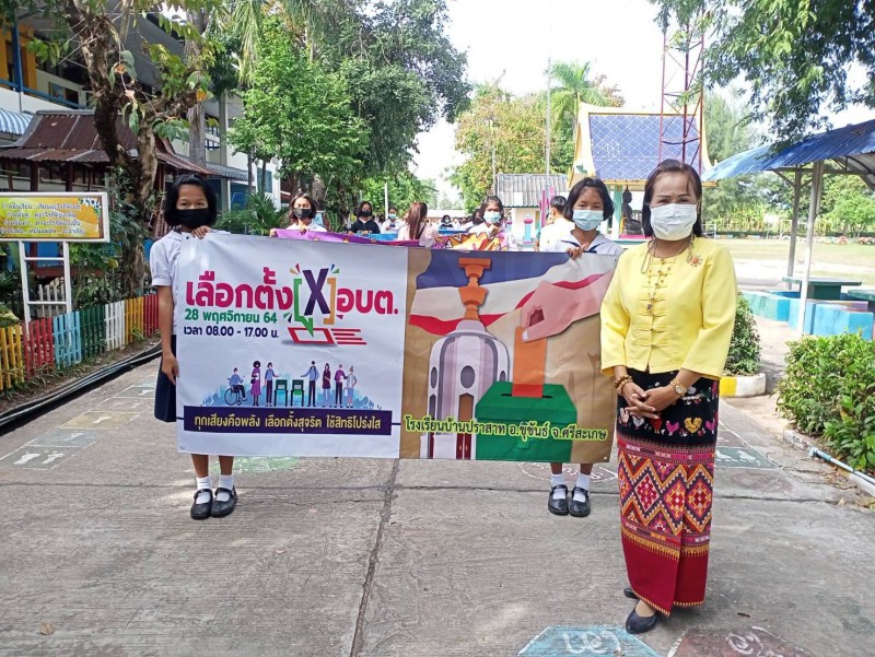 26 พฤศจิกายน 2564 โรงเรียนบ้านปราสาท โดย ผอ.สุพิชชา ไพศาลสุวรรณ รอง ผอ. คณะครูและนักเรียน ร่วมกันจัดกิจกรรมการเดินรณรงค์การไปใช้สิทธิ์เลือกตั้งอย่างสุจริตโปร่งใส ในการเลือกตั้งท้องถิ่น ที่จะมีขึ้นในวันที่ 28 พฤศจิกายน 2564