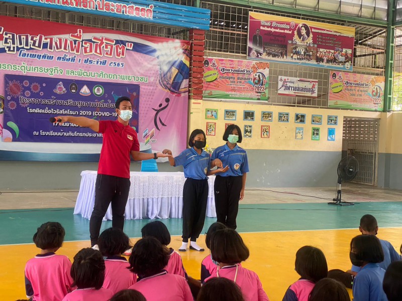 16 กันยายน 2565 ผอ.สุพิชชา ไพศาลสุวรรณ รอง ผอ.พรพิมาล แก้วธรรม และคุณครูทัศนีย์ สมศรี นำนักเรียนชั้นประถมศึกษาปีที่ 6 จำนวน 12 คน เข้าร่วมกิจกรรมโครงการเสริมสร้างสุขภาพและป้องกันโรคติดเชื้อไวรัสโคโรนา 2019 ณ โรงเรียนบ้านกันโทประชาสรรค์