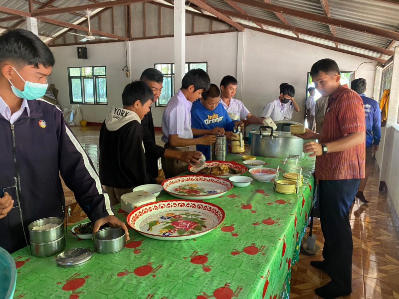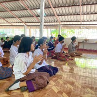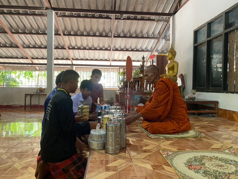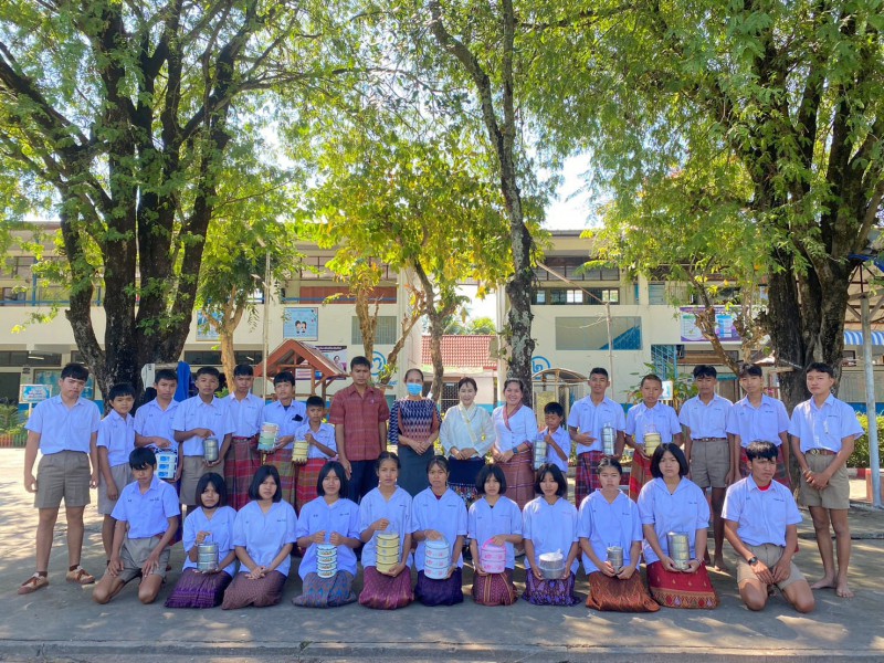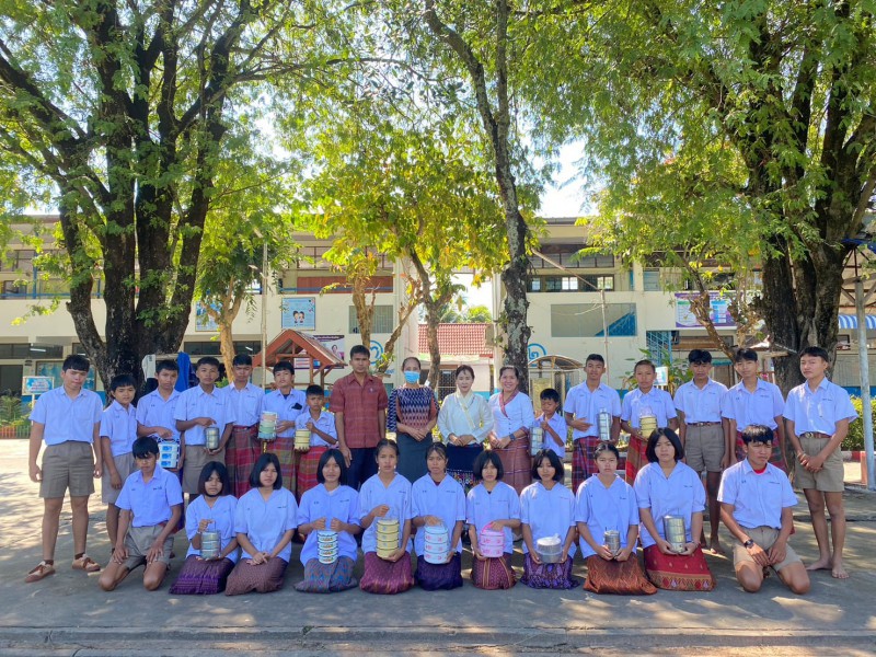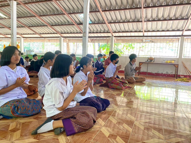 4 พฤศจิกายน 2565 วันศุกร์สุดสัปดาห์ พี่ๆนักเรียนชั้นมัธยมศึกษาปีที่ 2/1 นุ่งผ้าไทย ถือปิ่นโต ไปถวายเพลพระสงฆ์ที่วัดจันทราปราสาท