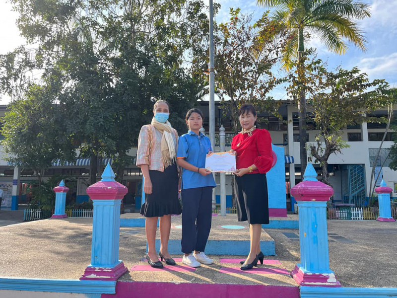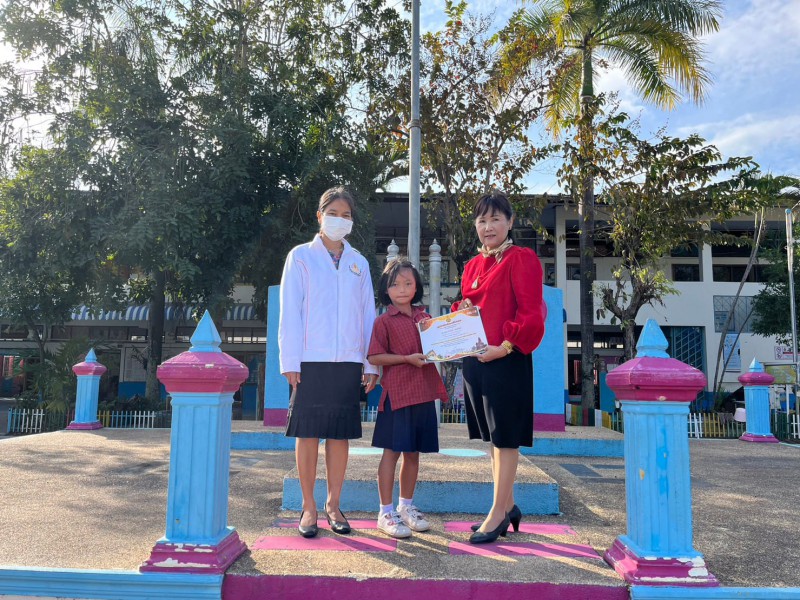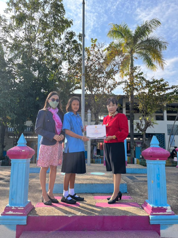 22 ธันวาคม 2565 นางสุพิชชา ไพศาลสุวรรณ ผู้อำนวยการโรงเรียน มอบรางวัลให้นักเรียนที่เข้าร่วมการประกวดแข่งขันวิชาการในงานศิลปหัตถกรรมนักเรียน ระดับกลุ่มและเขตพื้นที่การศึกษา จำนวน 35 รายการ