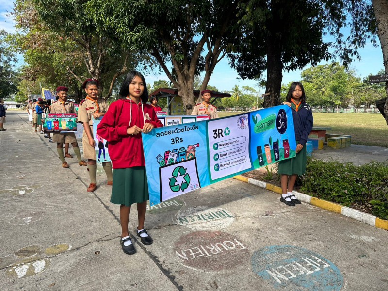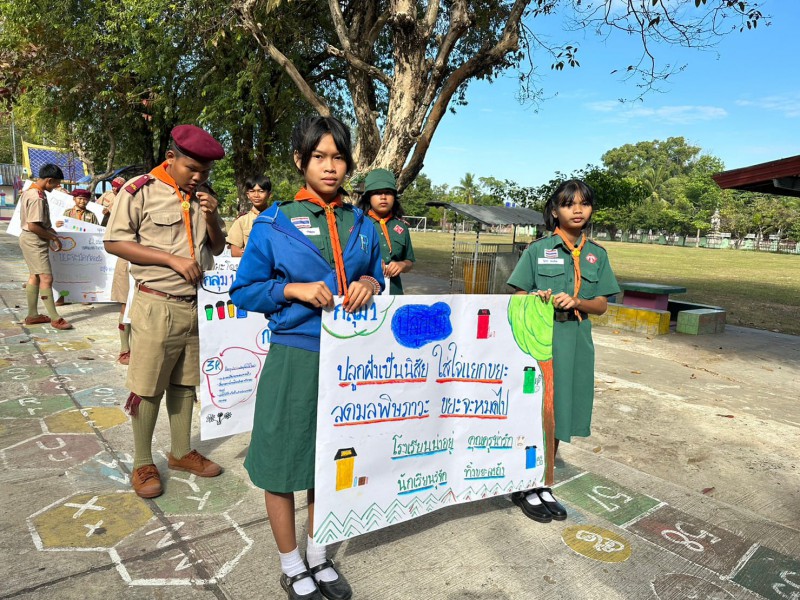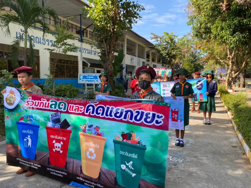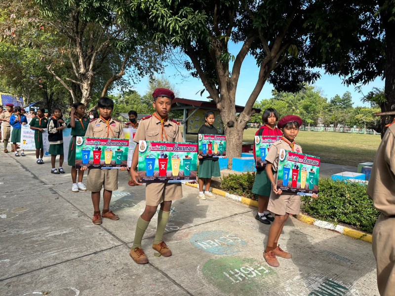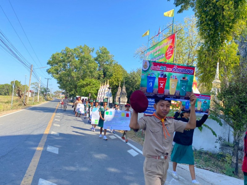 28 ธันวาคม 2565 ลูกเสือเนตรนารีจิตอาสา ระดับชั้นมัธยมศึกษาปีที่ 1 เดินรณรงค์การคัดแยกขยะในครัวเรือน เพื่อลดปริมาณขยะในชุมชนเขตบริการ บ้านมะขาม บ้านปราสาท และบ้านเสรี