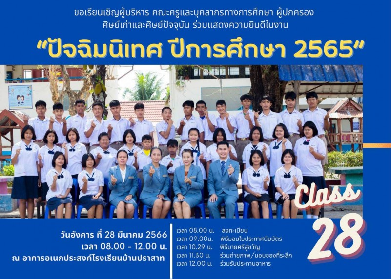โรงเรียนบ้านปราสาท สพป.ศก.เขต 3 จัดกิจกรรมปัจฉิมนิเทศนักเรียนชั้นมัธยมศึกษาปีที่ 3 จบการศึกษาประจำปีการศึกษา 2565 ในวันที่ 28 มีนาคม 2566