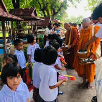 2 มิถุนายน 2566 ประมวลภาพกิจกรรมทำบุญตักบาตรเนื่องในวันวิสาขบูชา ของโรงเรียนบ้านปราสาท