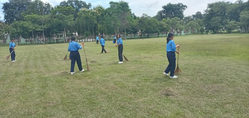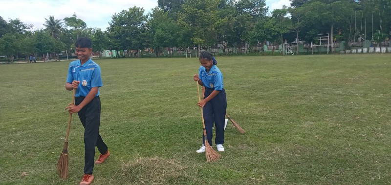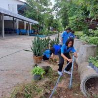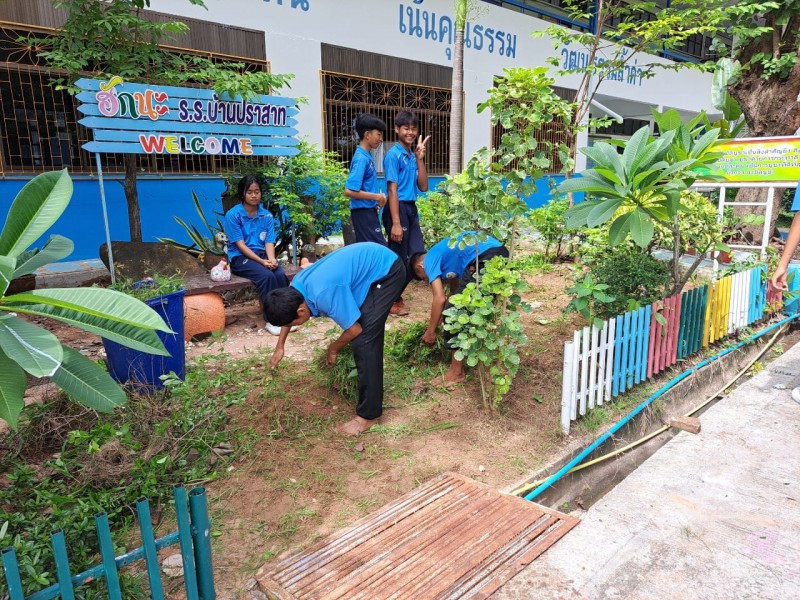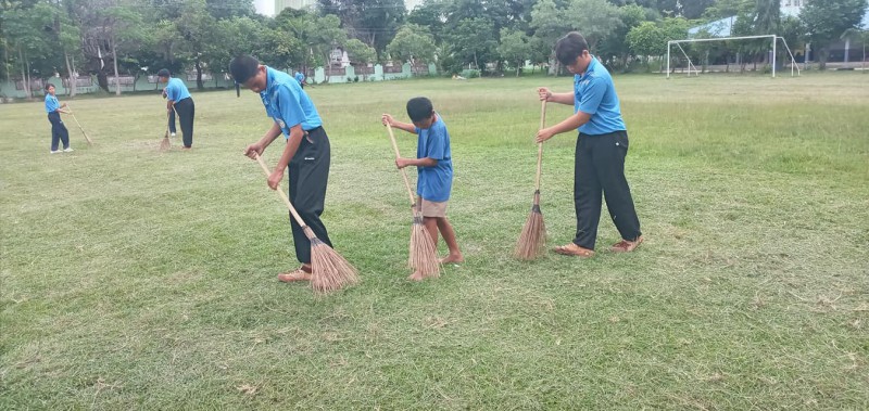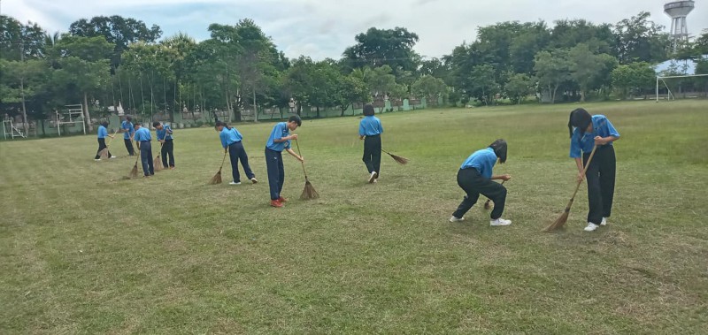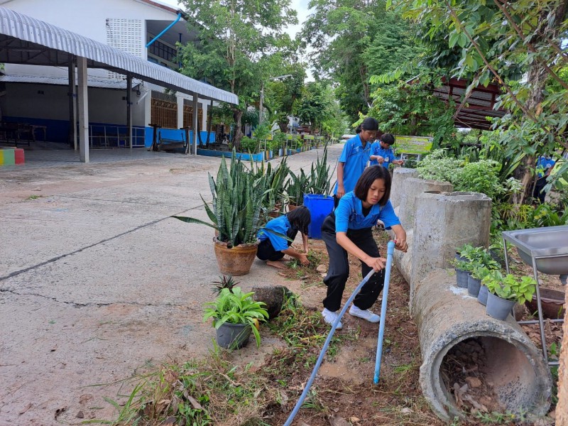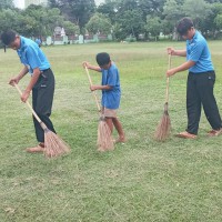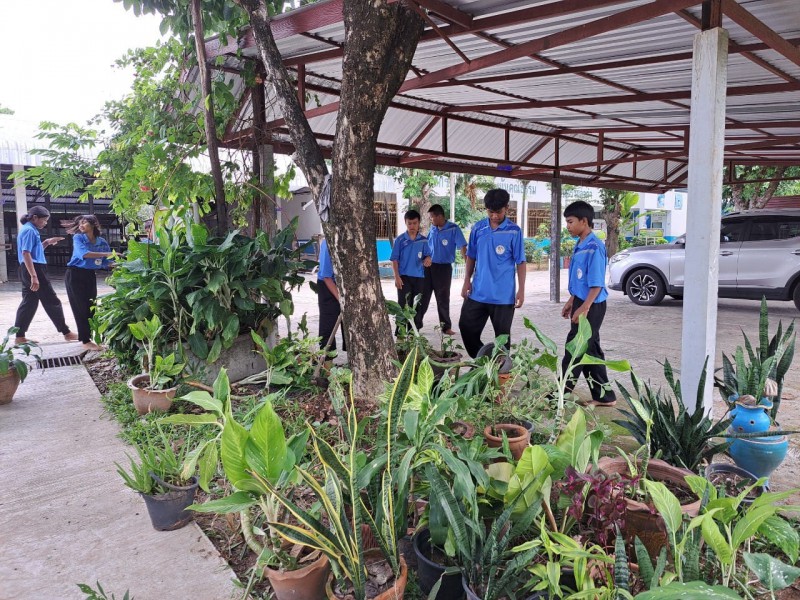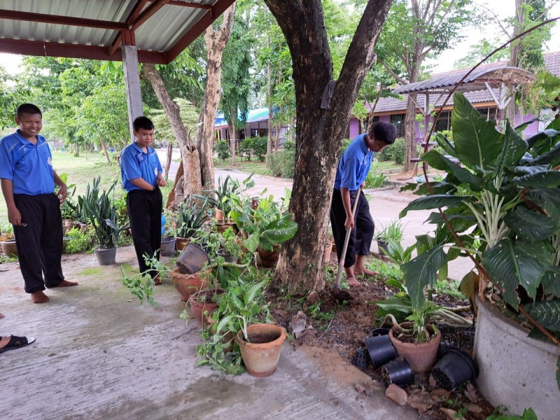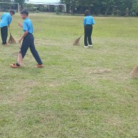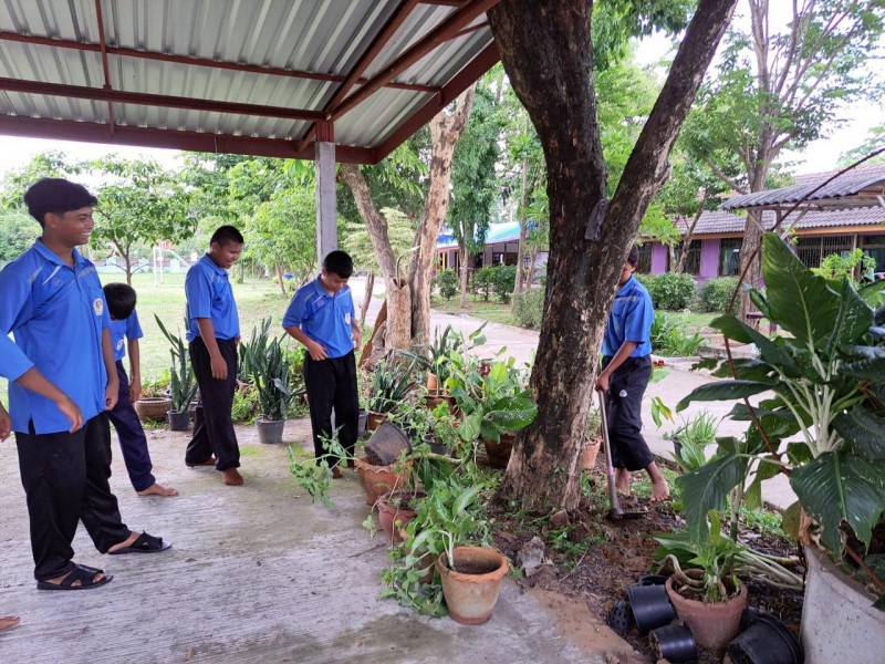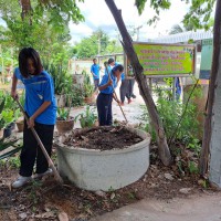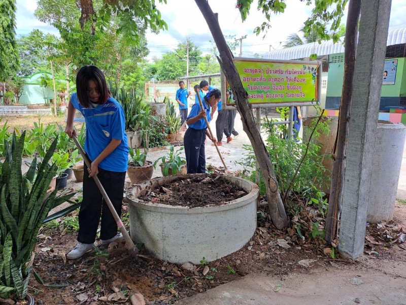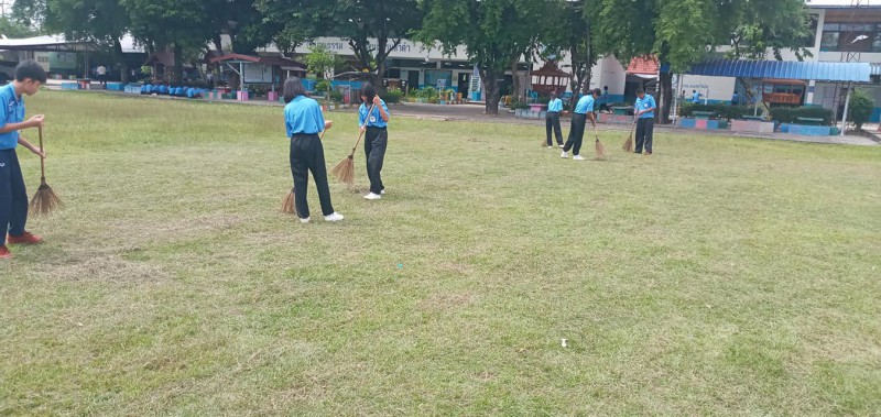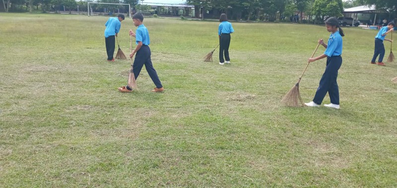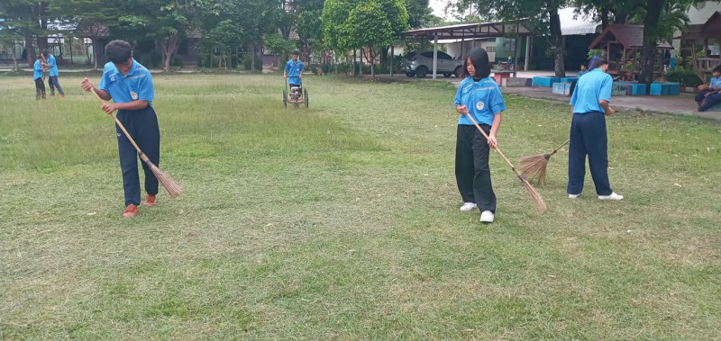 นักเรียนชั้น ม.3 ช่วยกันทำกิจกรรมจิตอาสาพัฒนาสวนหย่อมและสนามของโรงเรียน ให้สวยงามสะอาดตา น่าอยู่ น่าดู น่าเรียน