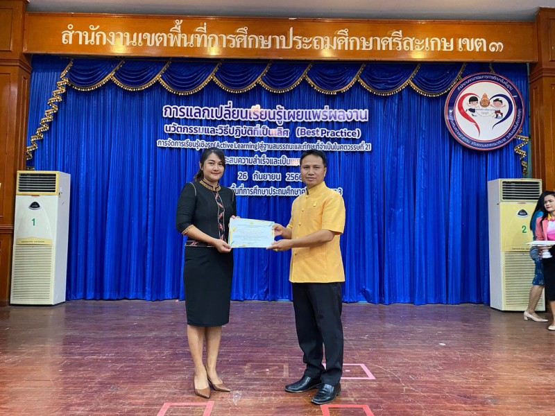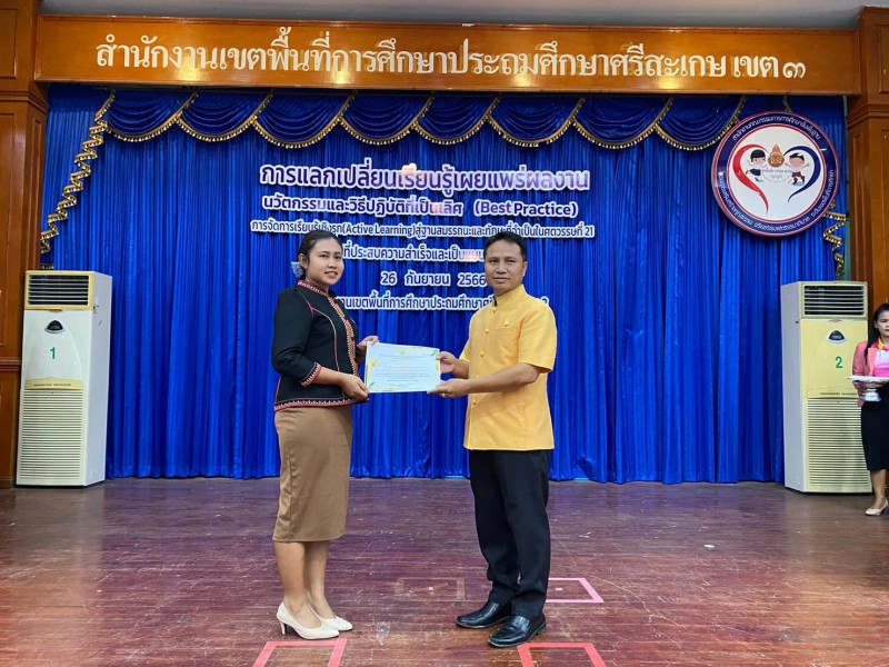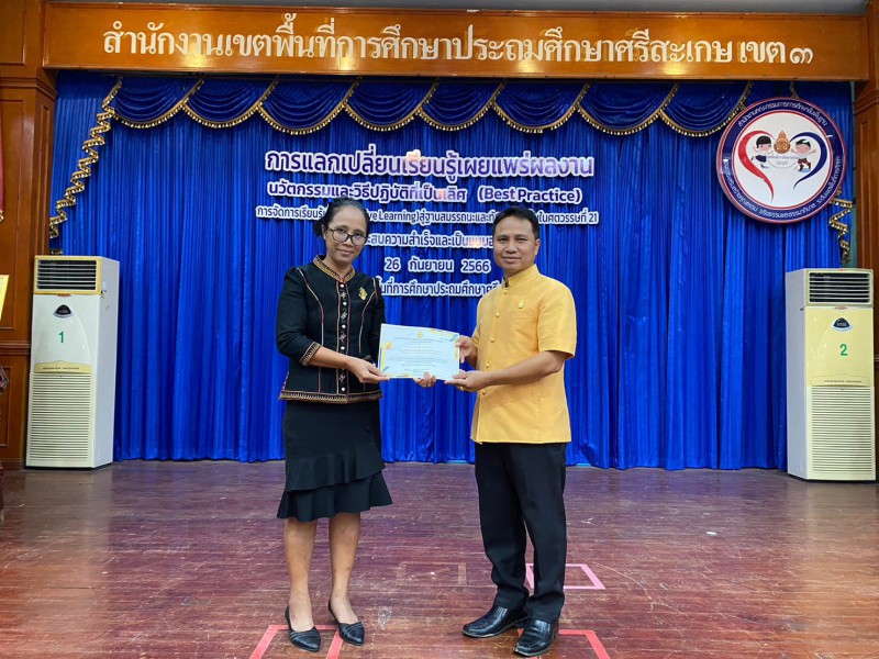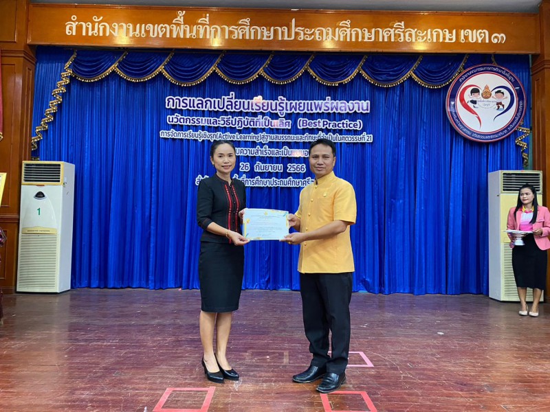 26 กันยายน 2566 ขอแสดงความยินดีกับคณะครูโรงเรียนบ้านปราสาท ได้รับรางวัล ผลงานและวิธีปฏิบัติที่เป็นเลิศ ( Best Practice ) การจัดการเรียนรู้ฐานสมรรถนะและทักษะที่จำเป็นในศตวรรษที่ 21