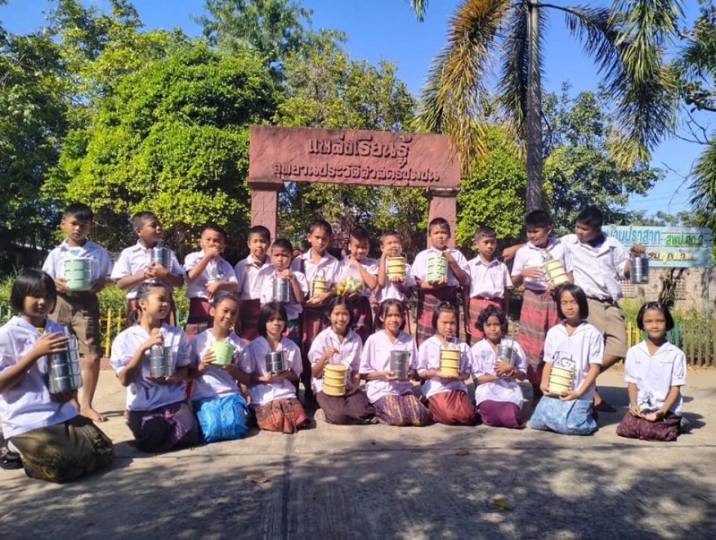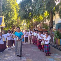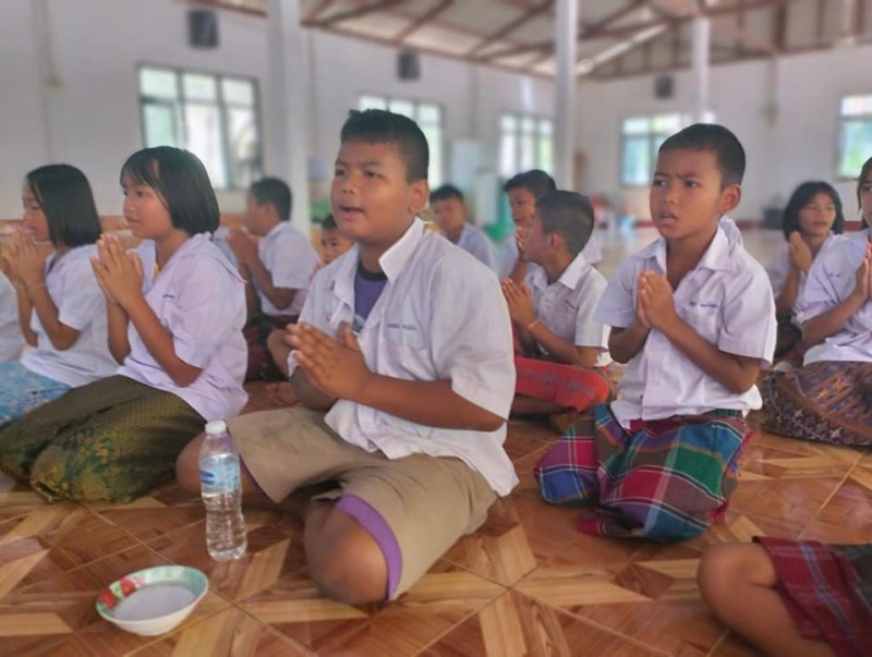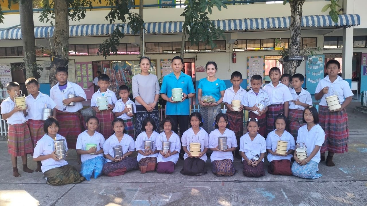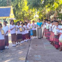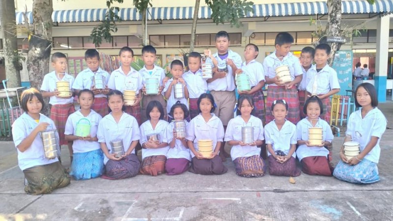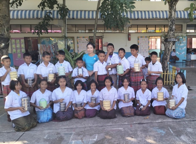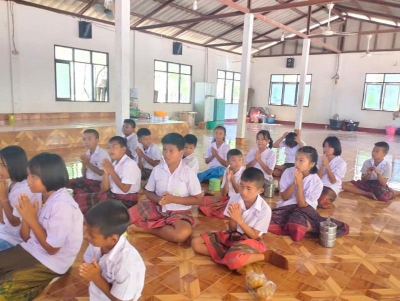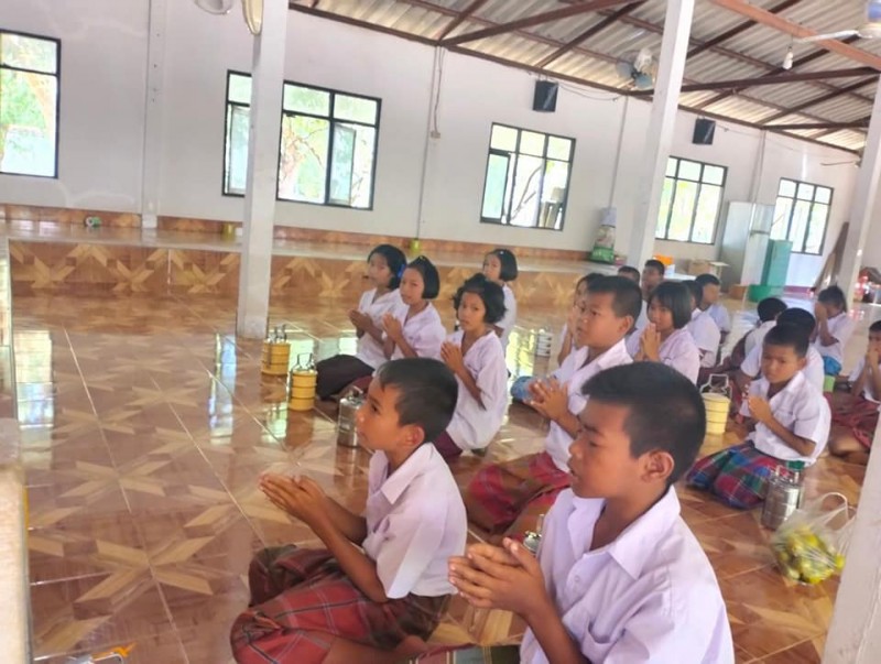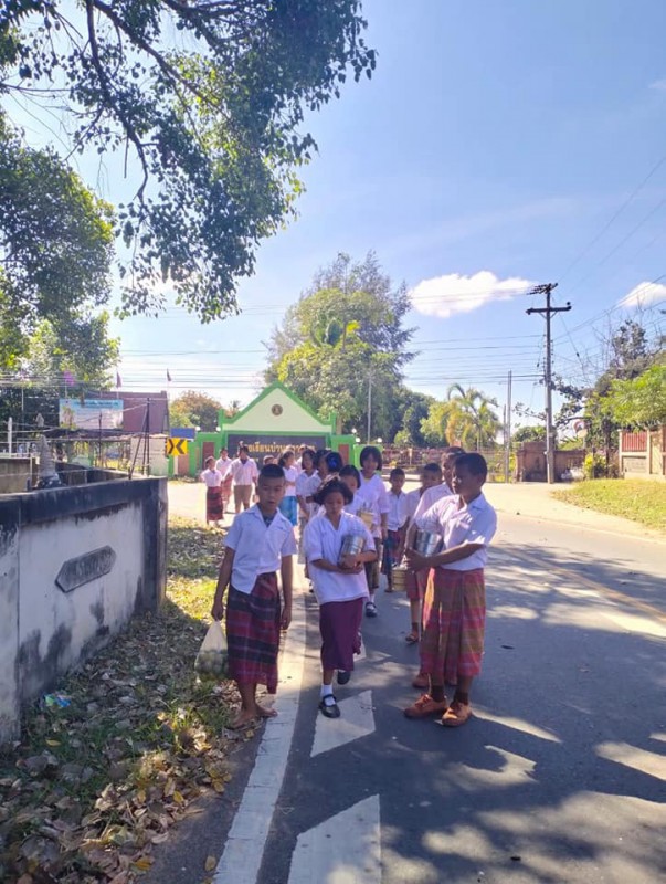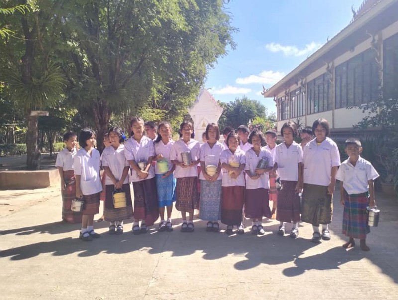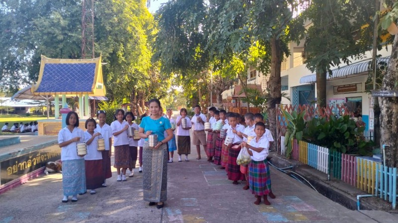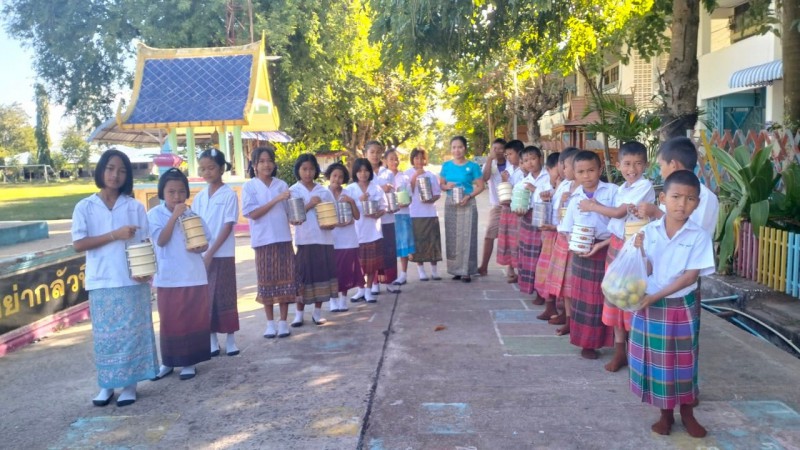 1 ธันวาคม 2566 วันศุกร์สุดสัปดาห์ น้องๆนักเรียนชั้นประถมศึกษาปีที่ 4 ทุกคน นุ่งผ้าไทย ชายนุ่งโสร่ง หญิงนุ่งผ้าถุง อย่างสวยงาม ถือปิ่นโต นำภัตตาหาร ไปถวายเพลพระสงฆ์ที่วัดจันทราปราสาท