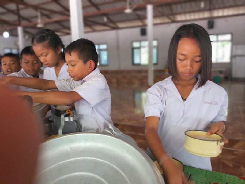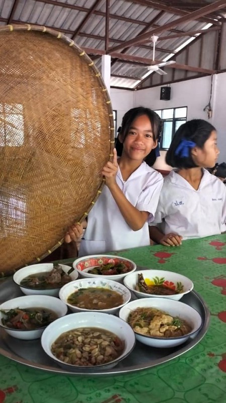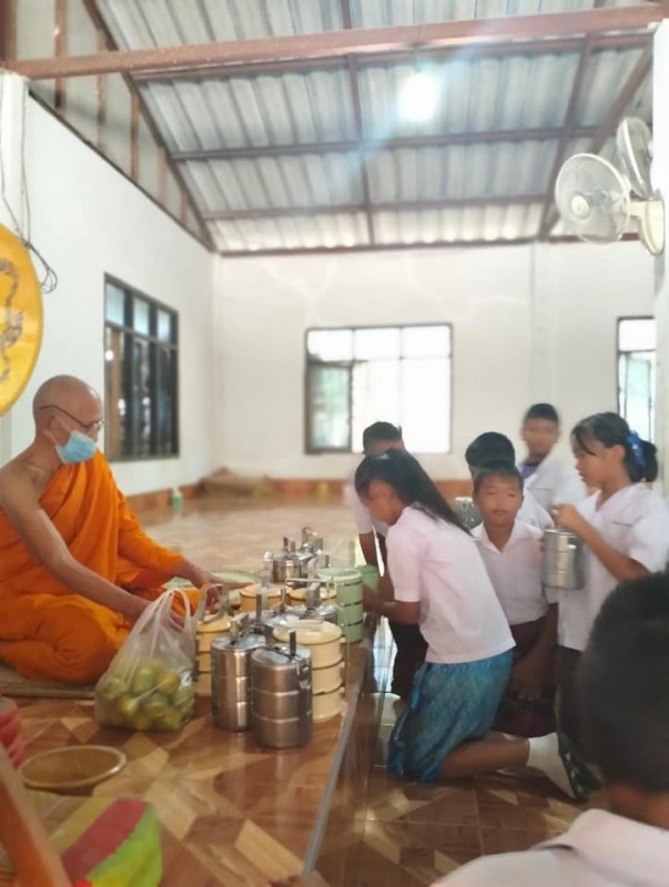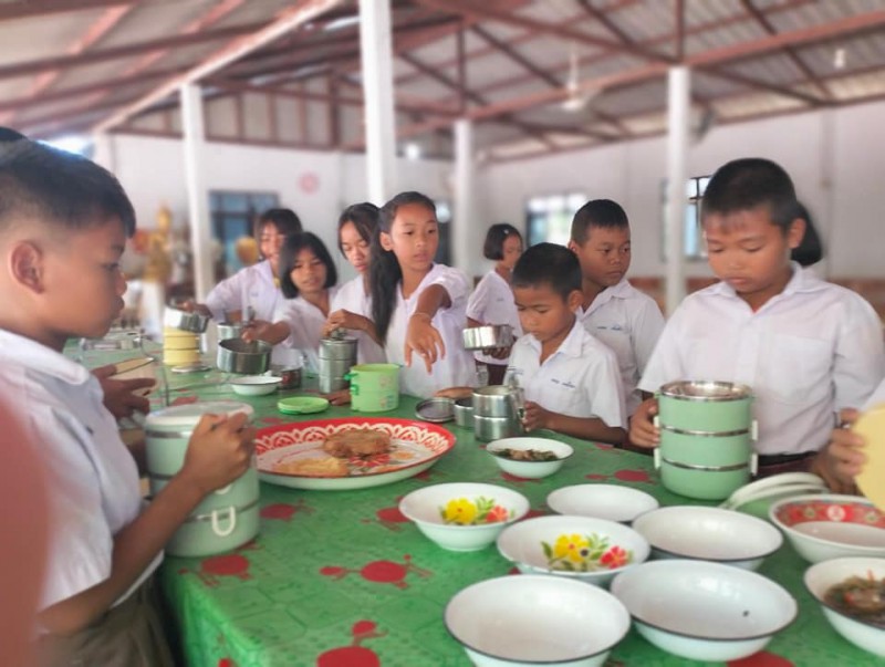 1 ธันวาคม 2566 วันศุกร์สุดสัปดาห์ น้องๆนักเรียนชั้นประถมศึกษาปีที่ 4 ทุกคน นุ่งผ้าไทย ชายนุ่งโสร่ง หญิงนุ่งผ้าถุง อย่างสวยงาม ถือปิ่นโต นำภัตตาหาร ไปถวายเพลพระสงฆ์ที่วัดจันทราปราสาท